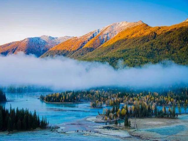 1、喀纳斯湖:位于新疆阿勒泰地区,被誉为“人间仙境”,湖水清澈见底,四周环绕着雪山、原始森林和草原,景色美不胜收。